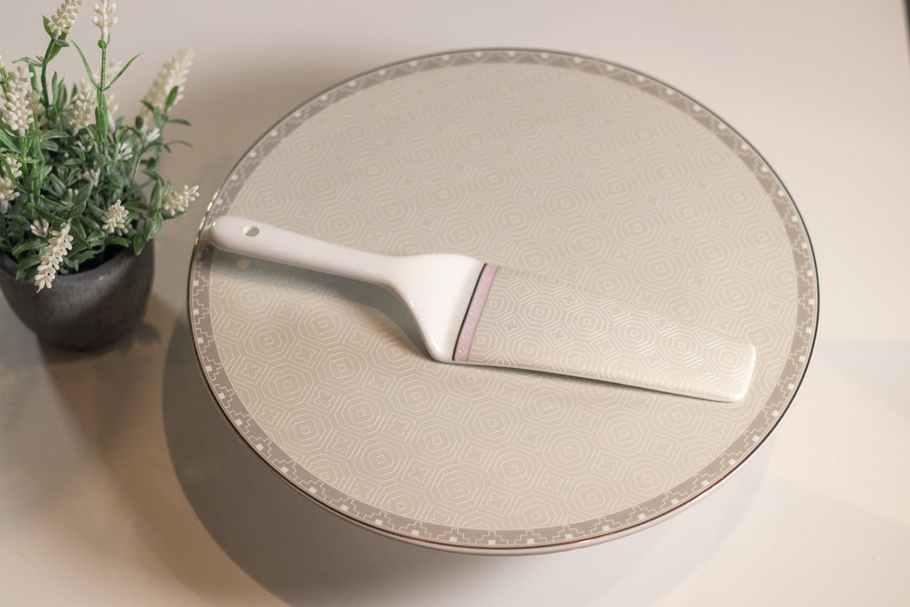 Avec ce présentoir à double étage, de couleur blanche aux motifs roses clairs, vous allez ajouter une touche d'élégance à la présentation de vos desserts.