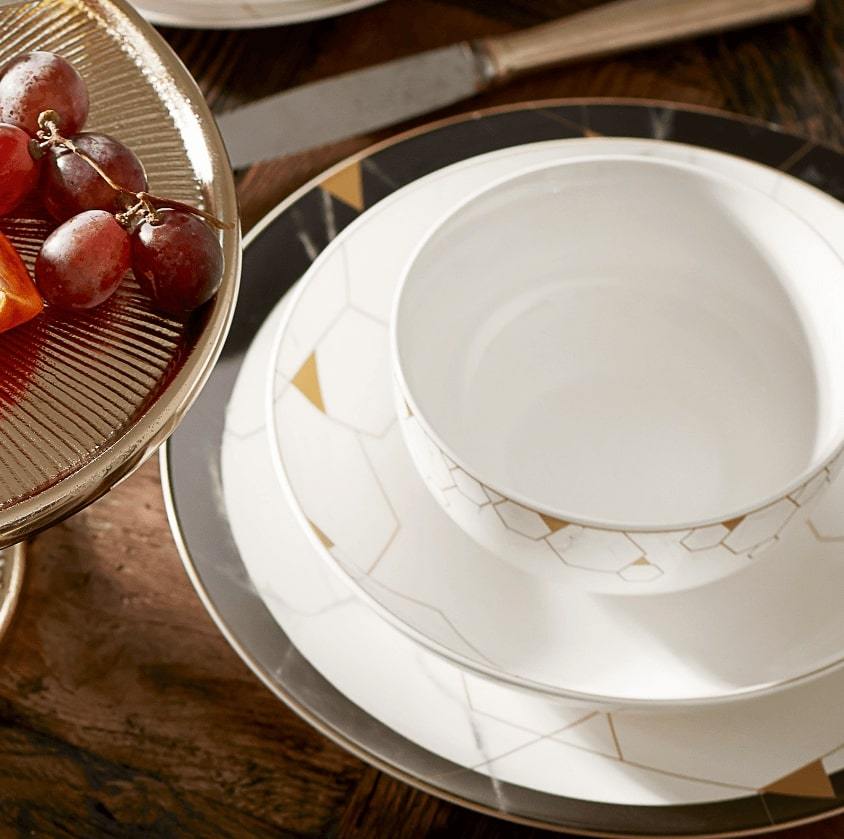Les tendances les plus populaires sont à vos tables avec la qualité de Karaca. Les touches dorées sur le fond effet marbré de la vaisselle Karaca Gem, la rendent aussi bien chic qu'originale.